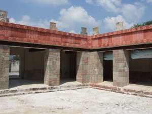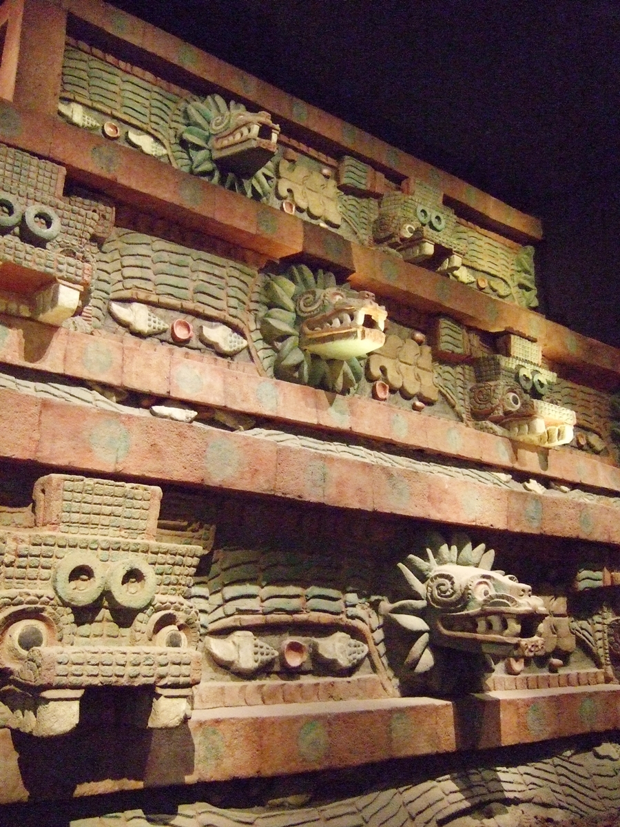 The enigmatic leaders of Teotihuacan appear by the mid-500s to hold sway over much of Mesoamerica. They mainly accomplished this through political alliances and vassal rulers. By controlling trade networks, they kept the Teotihucano people well fed and living in comparative luxury in an advanced city with running water, sewers, brick homes, neighborhood communities, and multi-level residences. Public rituals with human sacrifice that played out before thousands of viewers maintained priesthood and elite power. Eventually the system did fail by 650 CE. As with collapse of other major civilizations, a number of factors were involved. Perhaps most insidious was internal competition between priests, elites, and leaders. Resources were siphoned off from central government, weakening the discipline and social control systems. A series of long droughts occurred around 535-536 CE, with evidence of famine and malnutrition. It is possible the eruption of the Ilopango volcano in El Salvador in 535 CE created climate changes. There was increased warfare and internal unrest. Popular rebellion led to burning elite dwellings and major civic structures along the Avenue of the Dead. Sculptures inside palaces were shattered. Population declined to 20,000 and Teotihuacan’s power diminished. Many of the elite may have fled the city, going on to create new cultural centers to the south. Other nearby centers such as Cholula, Xochicalco, and Cacaxtla competed to fill the power void. This led to rise of the Totonac, Toltec, and later Aztec peoples.