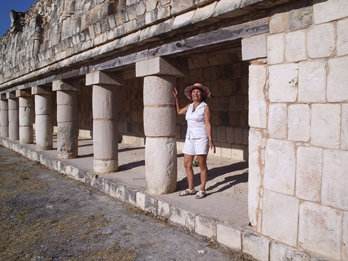 Lovely columns near ball court complex, Uxmal, Yucatan